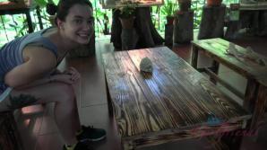 You take Gia out for the day to explore a bit. It turns out Gia is afraid of the monkeys, and just wants to head back home. You arent sure if its real or an act to get you back in bed. You go along because being in bed with her is great. She fucks you so good you forget about all the plans you had for the day! Gia is being brave and wants to try to feed the monkeys again. This time she has a blast! She holds a snake, and even helps clean an elephant. You see some more sights, and eat some delightful food before you ship off.