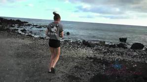 Kyler is happy to be in Hawaii, and you give her the grand tour. You hit the lave flow beaches, take her to see the turtles, and even hit the nude beach. When you get home you watch her shower, and make her cum.